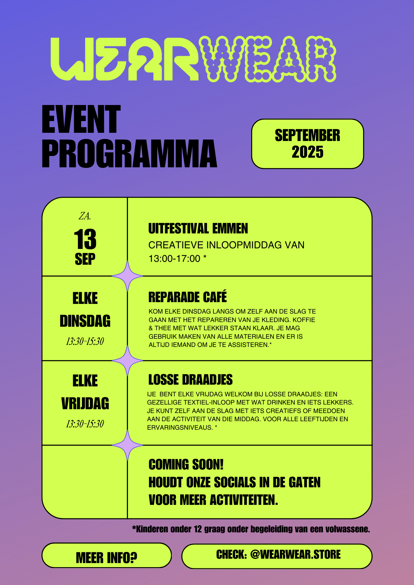Hier wordt maandelijks het programma geplaatst. Uiteraard delen we het programma en eventuele last-minute wijzigingen ook via onze socials.